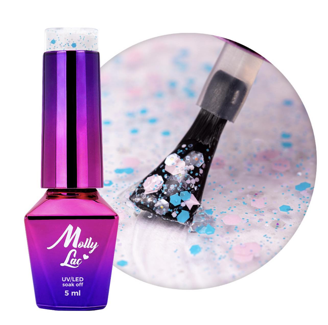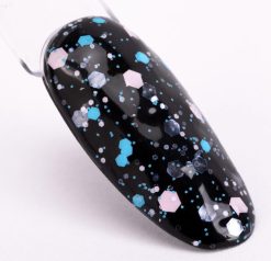 Migliaia di esagoni olografici scintillanti, polvere sottile, un tripudio di colori gioiosi: tutto questo è stato racchiuso in una finitura dedicata a un look da festa. Un prodotto 2 in 1 è un meraviglioso insieme di particelle in vari colori e trame incorporate in un prodotto di finitura. Il prodotto viene polimerizzato per circa 60 sec in lampada led/uv da 48w
