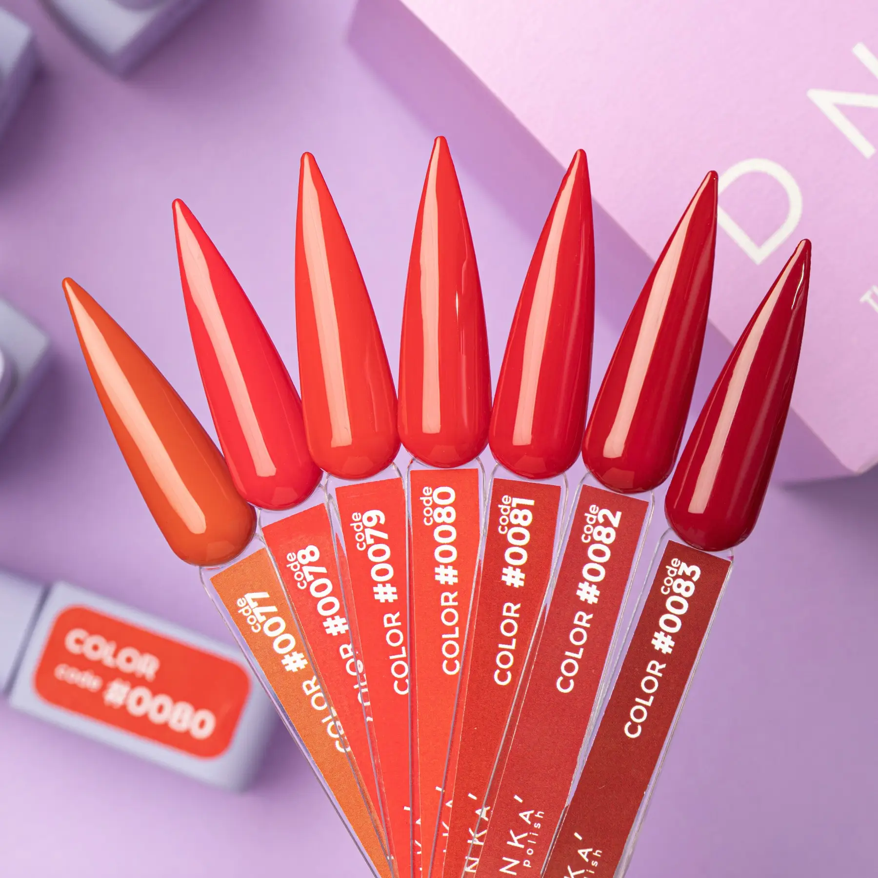 DNKa’ Gel Polish Color è una collezione autunno-inverno di smalti semipermanenti che si adattano perfettamente, si asciugano perfettamente, sono resistenti all’usura, facili da applicare, si allineano sulla lamina ungueale, sono facilmente solubili e non entrano in conflitto con altre TM. La collezione presenta 100 tonalità dal design unico in barattoli di velluto Soft Touch.