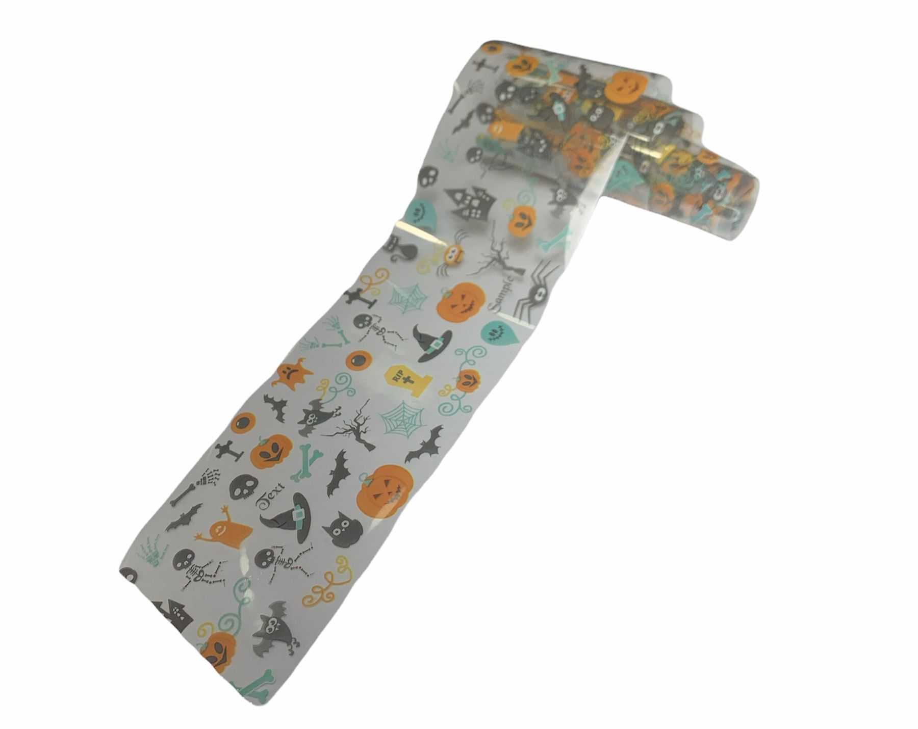 Questo foil con base grigia trasparente, con stampe di halloween, renderà le vostre unghie uniche e particolari, è facile da usare .