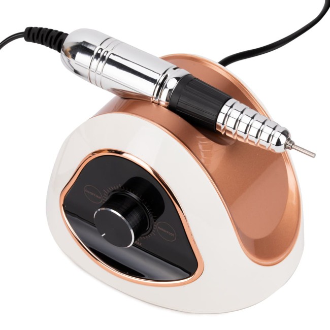 La fresa è caratterizzata da un’ottima qualità e dal giusto peso, grazie al quale è stabile e non si muove sulla scrivania durante il lavoro. L’aspetto di design del dispositivo è stato rifinito con attenzione ad ogni dettaglio: i dettagli estetici della finitura corrispondono qui a una qualità eccellente. La testa (manico) della fresa è realizzata con tecnologia che affatica meno la mano durante il lavoro, grazie al giusto peso e alla presa antiscivolo.