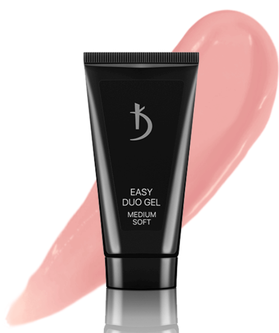 Il poligel è facilmente e uniformemente distribuito, grazie alla sua consistenza plastica di spessore medio-massimo. Mantiene perfettamente l’altezza durante l’applicazione, grazie alla formula a grana fine. Il polygel può essere utilizzato per creare allungamenti, per rinforzamento, correzione e riparazione. Inoltre, Easy Duo gel Medium Soft rende possibile lavorare non solo con dual form e nail form, ma consente anche di fare a meno dei template durante la costruzione. La serie Medium Soft è un materiale più elastico, ma meno pigmentato rispetto alla classica linea Easy Duo Gel.
