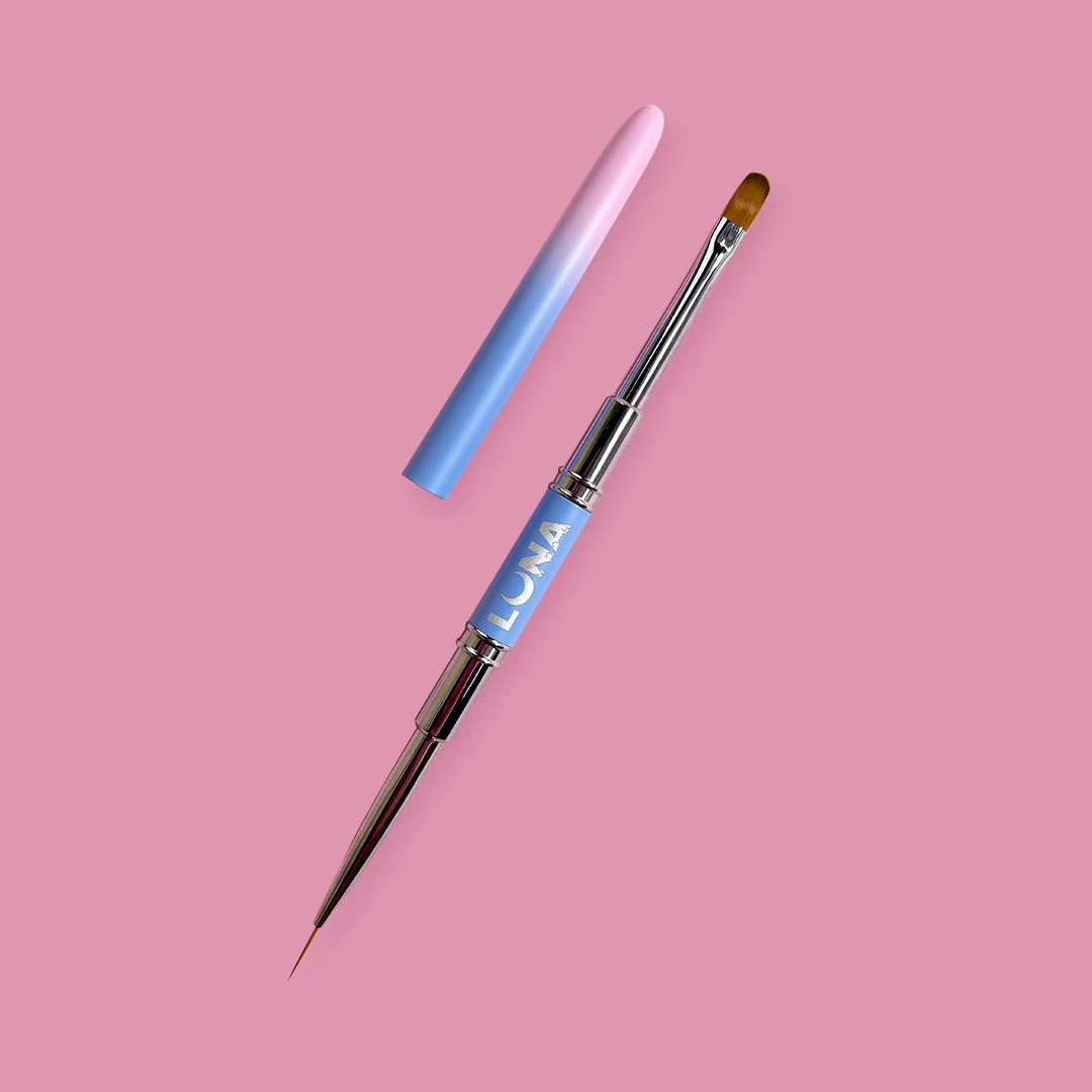 Il pennello DOUBLE è progettato per l’applicazione di gel o base, con setole naturali (11 mm su entrambi i lati). Un lato è perfetto per applicare il gel, mentre l’altro è ideale per creare linee sottili e nail art