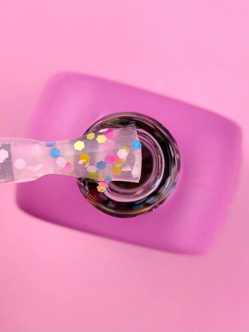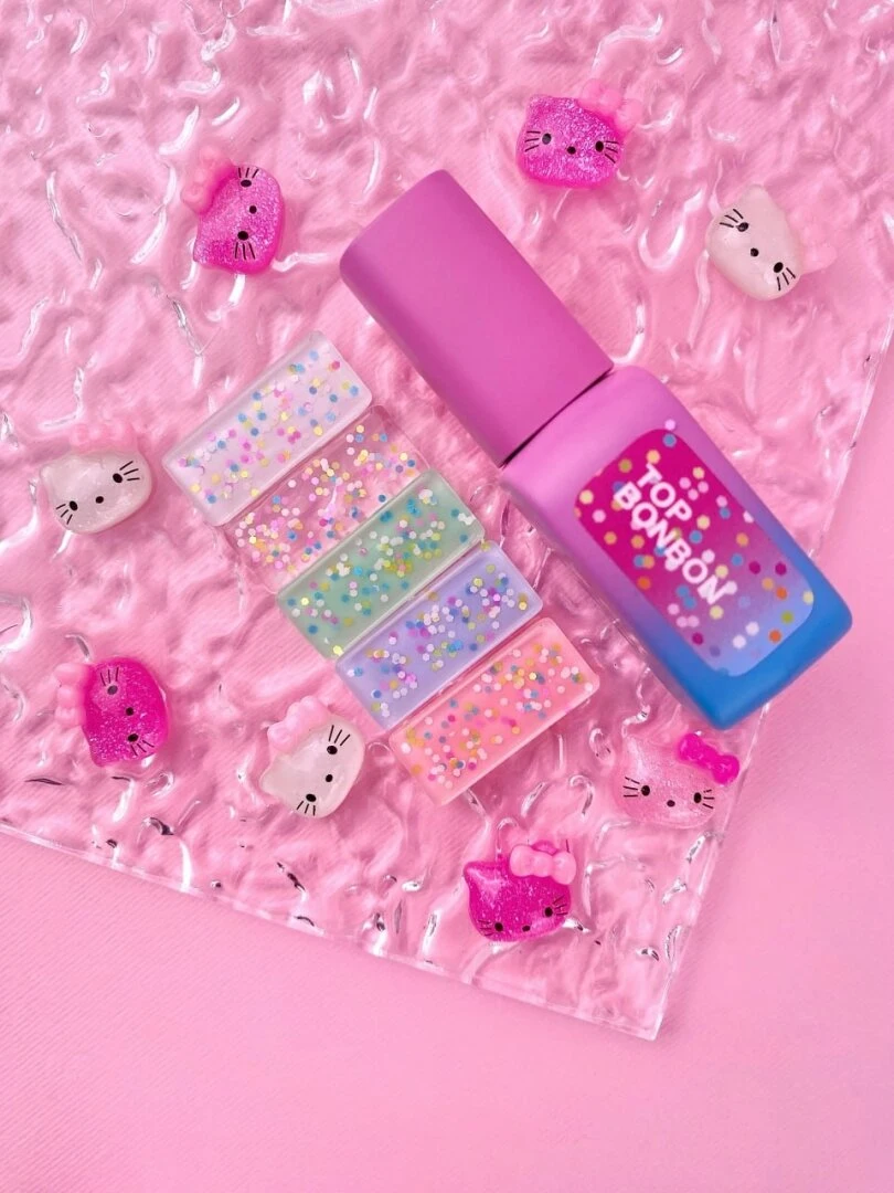 Top Bonbon รจ un top coat senza dispersione con elementi decorativi che si abbina armoniosamente a qualsiasi colore di unghie. Aggiunge un tocco giocoso e unico alla tua manicure.