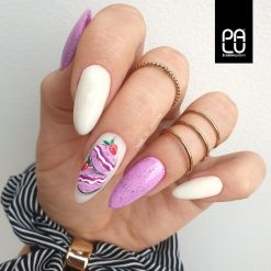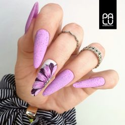 BA6 – un colore per tutte le amanti delle unghie viola. Una bellissima tonalità di viola energico ma tenue combinata con particelle nere ti delizierà con la tua manicure estiva. Questa intensa tonalità estiva di viola metterà in risalto meravigliosamente la tua abbronzatura estiva e sarà un’ottima decorazione per il tuo stile vacanziero.
