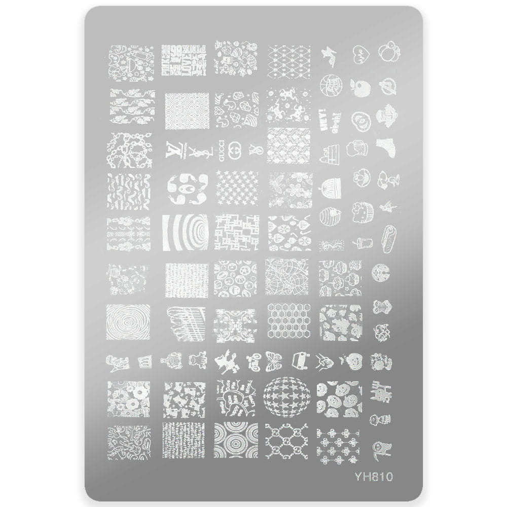Piastrina metallica per stamping con vari disegni e scritte, facili da utilizzare con cui potrai creare decorazioni veloci e alla moda con smalti stamping oppure con colori semipermanenti molto pigmentati.