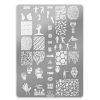 Piastrina metallica per stamping con vari disegni e scritte, facili da utilizzare con cui potrai creare decorazioni veloci e alla moda con smalti stamping oppure con colori semipermanenti molto pigmentati.