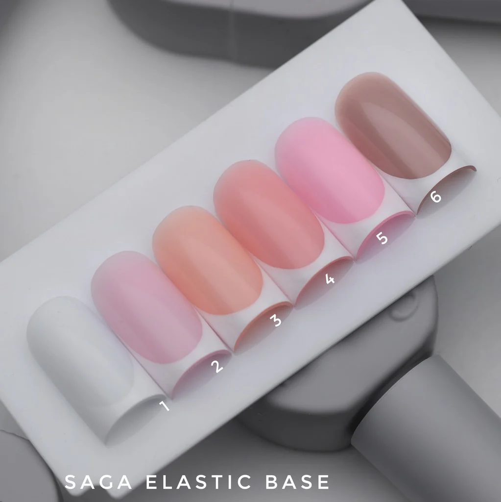 Saga Base camouflage Elastic è una base camouflage che rinforza, allunga e modella le unghie.