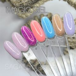 Saga Professional Magic Builder Gel è una linea di gel rigidi e non flessibili, pensati per l’allungamento e il rinforzo delle unghie. Hanno una consistenza medio-densa, sono autolivellanti, richiedono una limatura minima e sono adatti anche alla tecnica “senza limatura”. Si applicano su una base (il produttore consiglia di utilizzare Soft Base). Prima di applicare la copertura, è consigliabile rimuovere i residui di colla dal Magic Builder Gel.