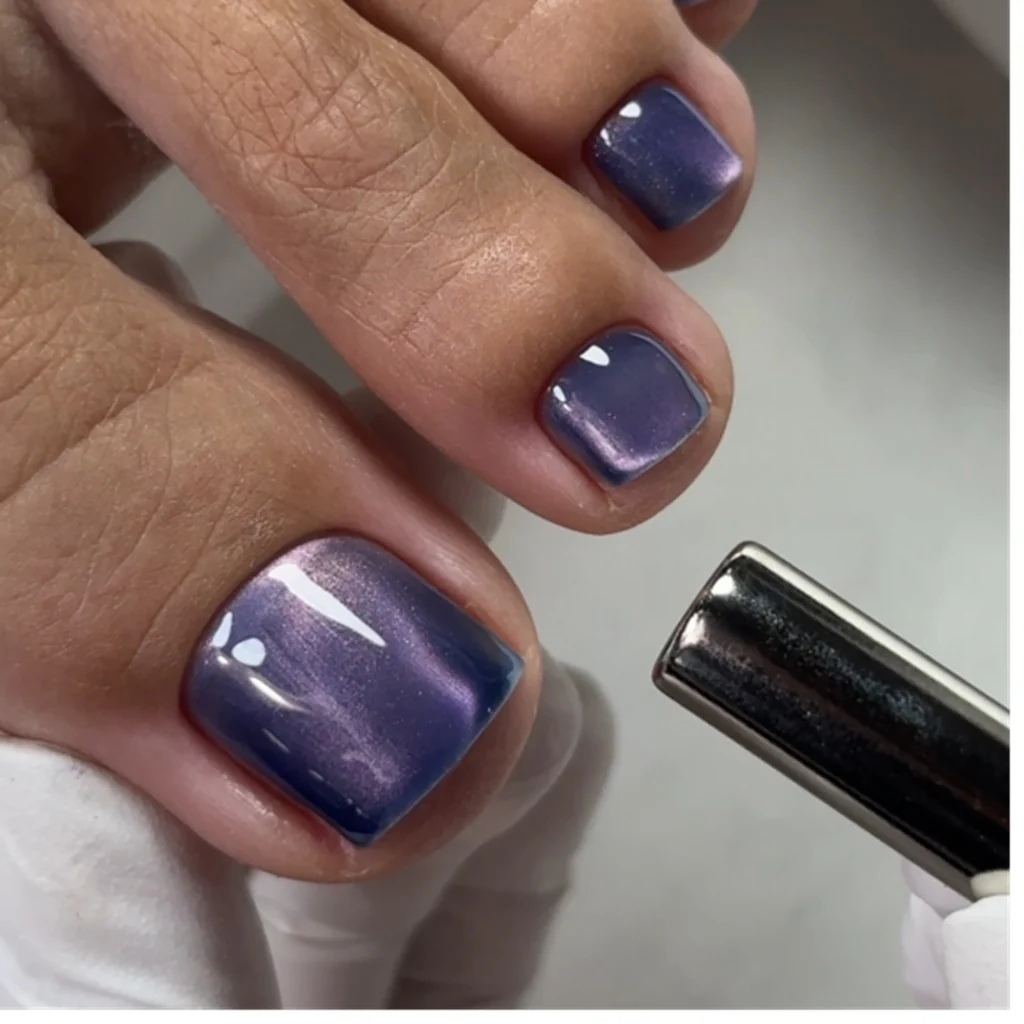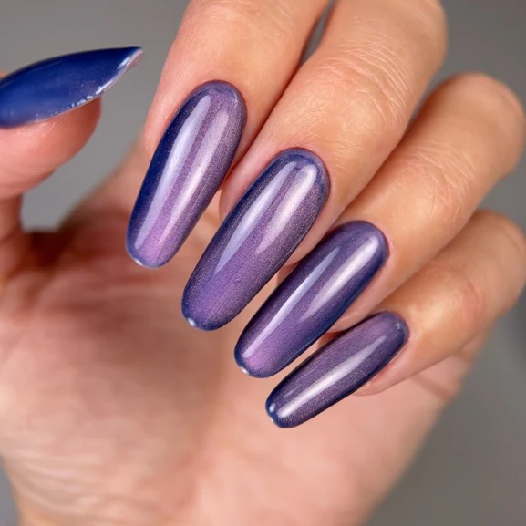 Saga Smoothie Cat Cat Eye Gel è una collezione duochrome. La tonalità può variare a seconda della posizione delle particelle metalliche all’interno della texture. La dimensione del riflesso influisce sulla tonalità dominante. Pigmenti profondi e iridescenti creano una brillantezza complessa e sfaccettata sulle unghie. Questo rende la manicure vivace, espressiva e unica a ogni movimento della mano.