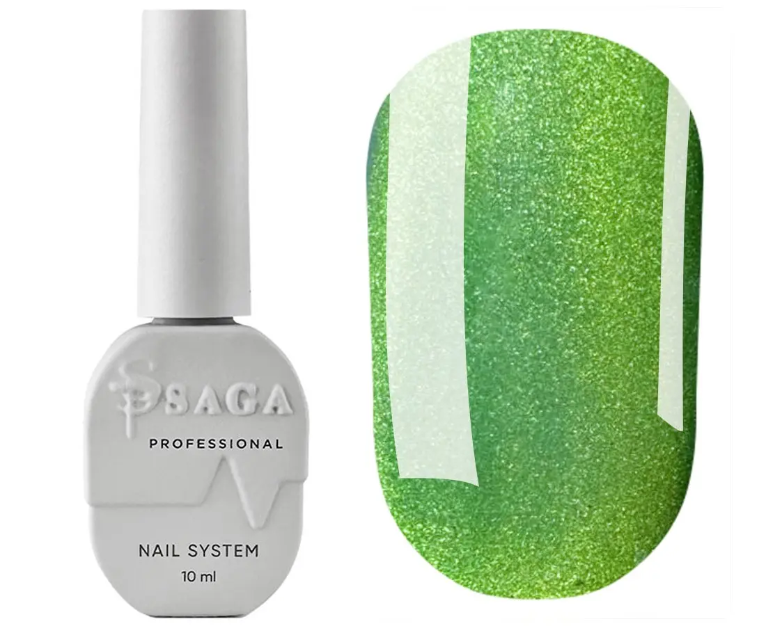 Saga Smoothie Cat Cat Eye Gel è una collezione duochrome. La tonalità può variare a seconda della posizione delle particelle metalliche all’interno della texture. La dimensione del riflesso influisce sulla tonalità dominante. Pigmenti profondi e iridescenti creano una brillantezza complessa e sfaccettata sulle unghie. Questo rende la manicure vivace, espressiva e unica a ogni movimento della mano.