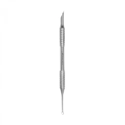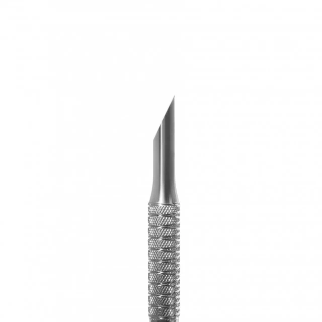 – La parte operativa “spingitore smussato” viene utilizzata per sollevare e spingere indietro la cuticola ruvida e fortemente aderente, liberando il bordo libero dell’unghia, rimuovendo i residui di smalto gel.